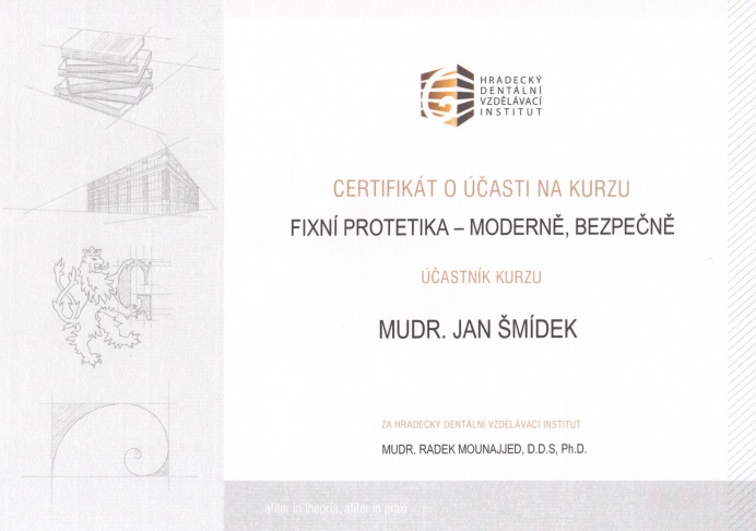 Fixní protetika, HDVI, Hradec Králové, 4.12.2010, certifikát
