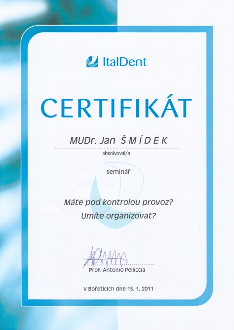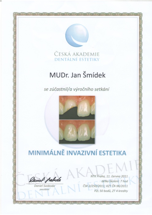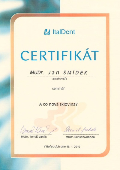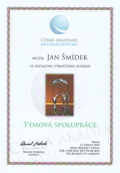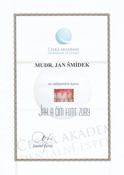 Jak a čím fotit zuby, ČADE, Hradec Králové, 13.11.2010, certifikát