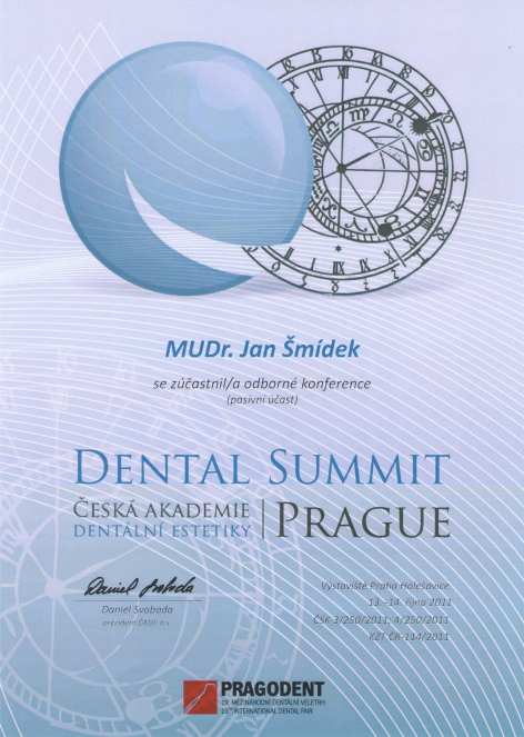 Dental Summit Prague, Praha, 13.-14.10.2011, certifikát