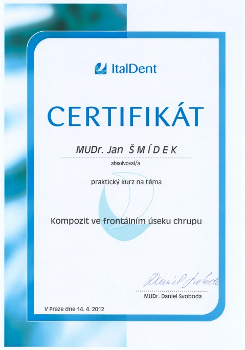 Kompozit ve frontálním úseku, Praha, 14.4.2012, certifikát