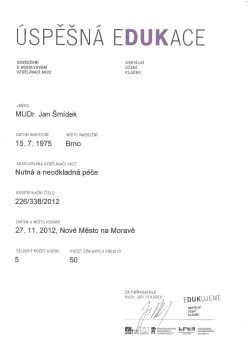 Nutná a neodkladná péče II, DUK, Nové Město na Moravě, 10.1.2013, certifikát