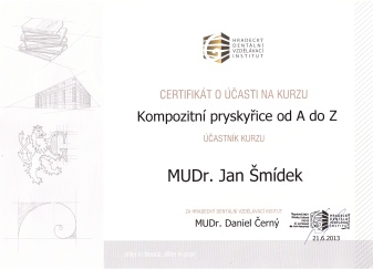 Kompozitní pryskyřice od A do Z, HDVI, Hradec Králové, 10.1.2013, certifikát