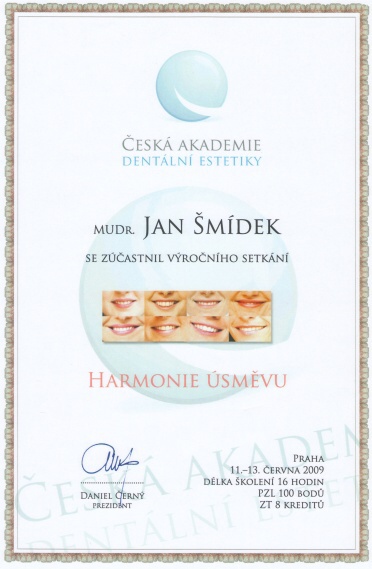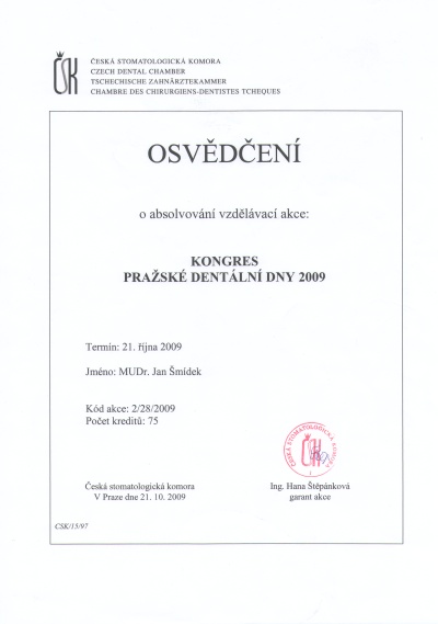 Praské dentální dny, Praha, 21.10.2009, certifikát
