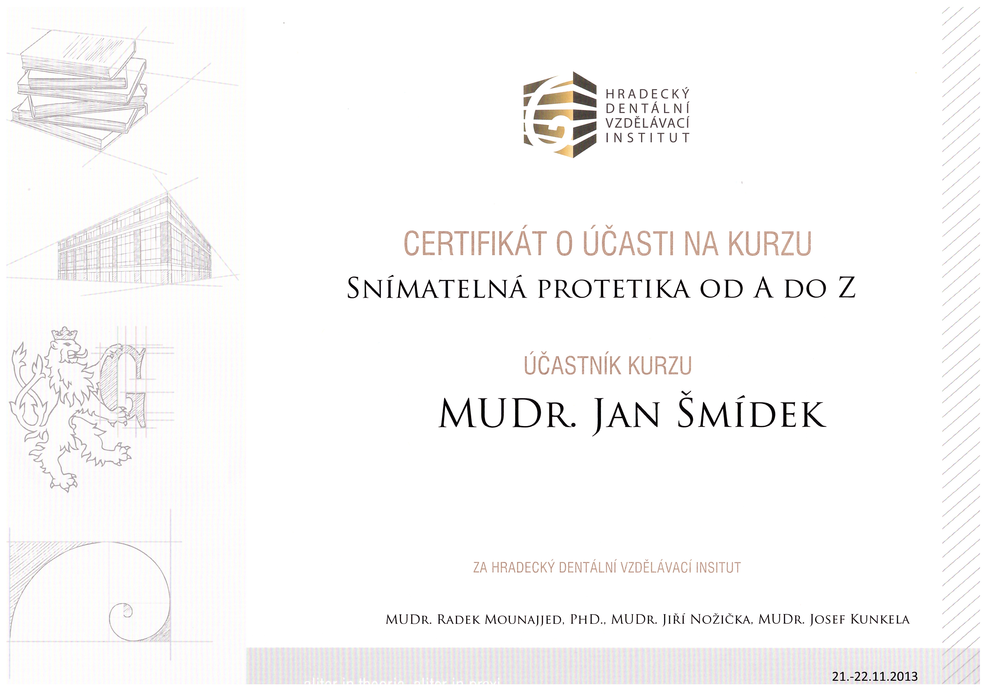 Snímatelná protetika od A do Z, HDVI, Hradec Králové, 21.-22.11.2013, certifikát