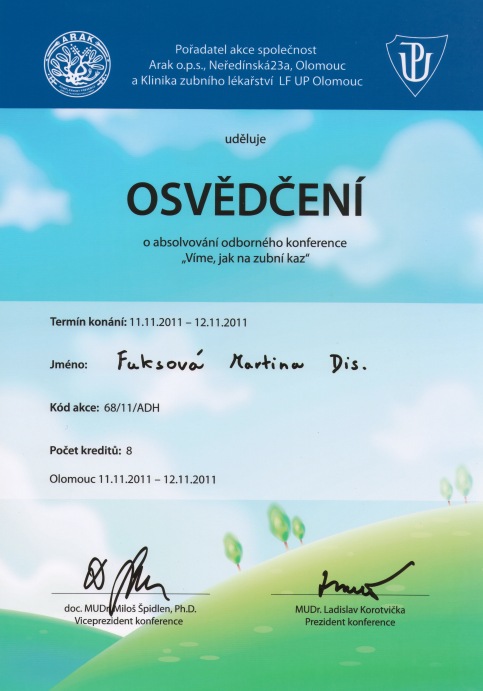 Víme jak na zubní kaz, Olomouc, 11.-12.11.2011, certifikát