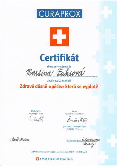Curaprox - Zdravé dásně, Brno, 31.3.2010, certifikát